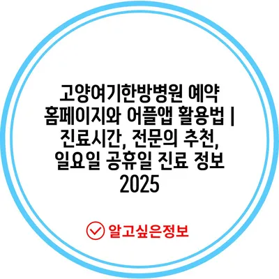 ✅ 고양여기한방병원 예약 방법과 진료 정보, 지금 확인해 보세요.