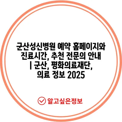 군산성신병원 예약 홈페이지와 진료시간, 추천 전연락 공지 | 군산, 평화의료재단, 의료 정보 2025 에 대해 자주 묻는 질문 TOP 5