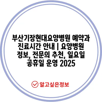 부산기장현대요양병원 예약과 진료시간 공지 | 요양병원 정보, 전연락 추천, 일요일 공휴일 운영 2025 에 대해 자주 묻는 질문 TOP 5