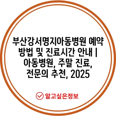 ✅ 부산강서명지아동병원의 진료 시간과 예약 방법을 자세히 알아보세요.