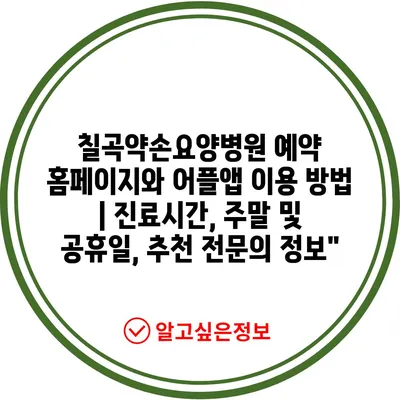 ✅ 칠곡약손요양병원의 진료시간과 예약 방법을 간편하게 알아보세요.
