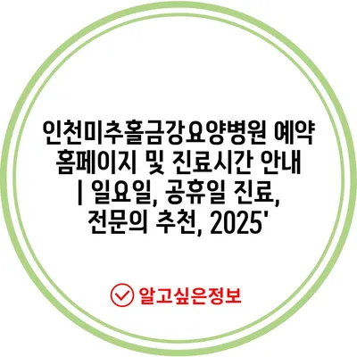 인천미추홀금강요양병원 예약 홈페이지 및 진료시간 공지 | 일요일, 공휴일 진료, 전연락 추천, 2025′ 에 대해 자주 묻는 질문 TOP 5