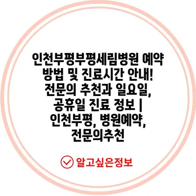 ✅ 인천부평부평세림병원 예약 방법과 진료시간을 상세히 알아보세요!