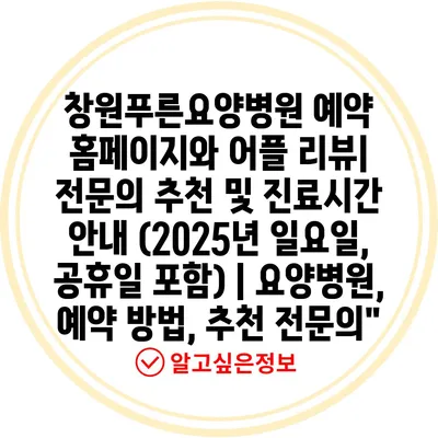 창원푸른요양병원 예약 홈페이지와 어플 리뷰| 전문의 추천 및 진료시간 안내 (2025년 일요일, 공휴일 포함) | 요양병원, 예약 방법, 추천 전문의”