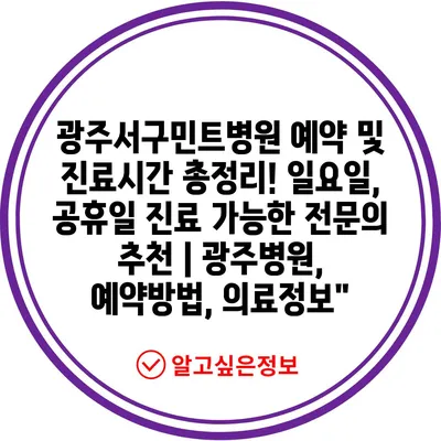 ✅ 광주서구민트병원의 진료시간과 예약 방법을 알아보세요!