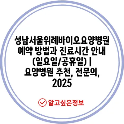 성남서울위례바이오요양병원 예약 방법과 진료시간 공지 (일요일/공휴일) | 요양병원 추천, 전연락, 2025 에 대해 자주 묻는 질문 TOP 5