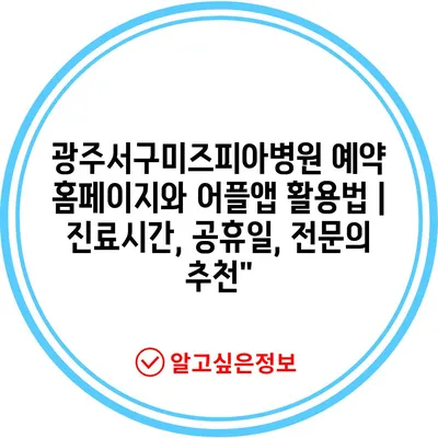 ✅ 광주서구미즈피아병원 예약 방법과 팁을 알아보세요.
