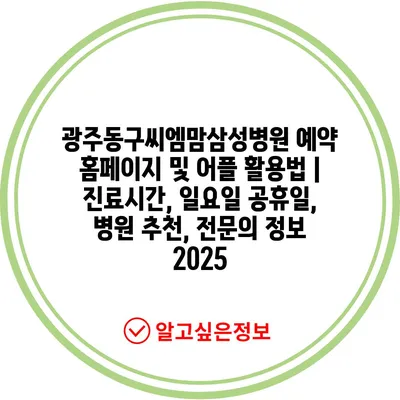 광주동구씨엠맘삼성병원 예약 홈페이지 및 어플 활용법 | 진료시간, 일요일 공휴일, 병원 추천, 전연락 정보 2025에 대해 소개합니다.