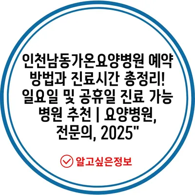 인천남동가온요양병원 예약 방법과 진료시간 총정리! 일요일 및 공휴일 진료 가능 병원 추천 | 요양병원, 전연락, 2025″ 에 대해 자주 묻는 질문 TOP 5