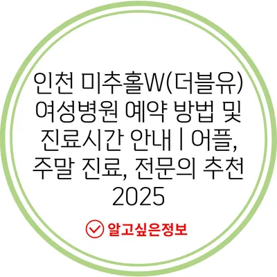 ✅ 인천 미추홀W 여성병원의 진료시간과 예약 방법을 알아보세요!