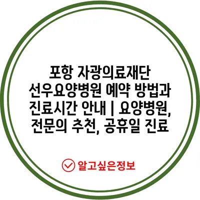 ✅ 포항 자광의료재단 선우요양병원의 예약 방법을 지금 바로 알아보세요.