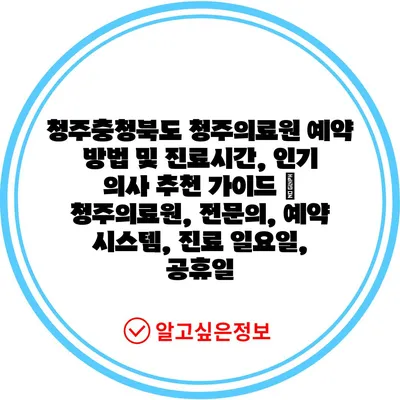 청주충청북도 청주의료원 예약 방법 및 진료시간, 인기 의사 추천 가이드 | 청주의료원, 전문의, 예약 시스템, 진료 일요일, 공휴일