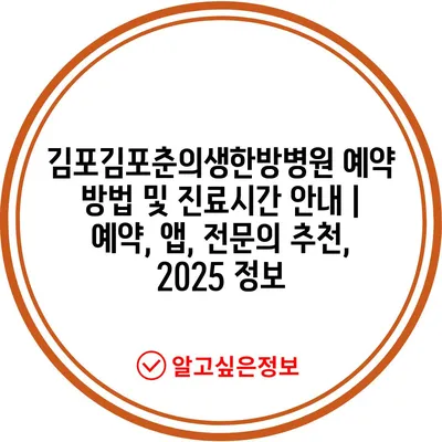 김포김포춘의생한방병원 예약 방법 및 진료시간 공지 | 예약, 앱, 전연락 추천, 2025 정보에 대해 알아보겠습니다.