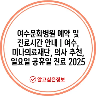 여수문화병원 예약 및 진료시간 공지 | 여수, 미나의료재단, 의사 추천, 일요일 공휴일 진료 2025 에 대해 자주 묻는 질문 TOP 5