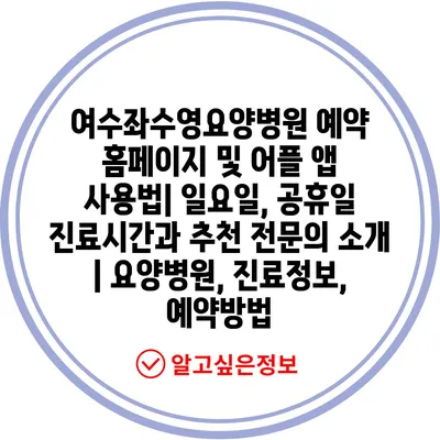 ✅ 여수좌수영요양병원 예약 방법을 자세히 알아보세요.