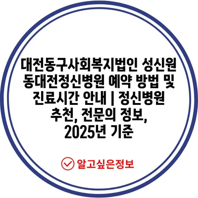 대전동구사회복지법인 성신원 동대전정신병원 예약 방법 및 진료시간 공지 | 정신병원 추천, 전연락 정보, 2025년 기준 에 대해 자주 묻는 질문 TOP 5