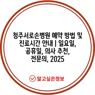 청주서로손병원 예약 방법 및 진료시간 공지 | 일요일, 공휴일, 의사 추천, 전연락, 2025 에 대해 자주 묻는 질문 TOP 5