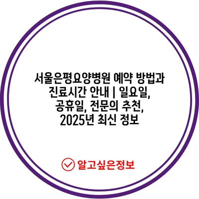 서울은평요양병원 예약 방법과 진료시간 공지 | 일요일, 공휴일, 전연락 추천, 2025년 최신 정보 에 대해 자주 묻는 질문 TOP 5
