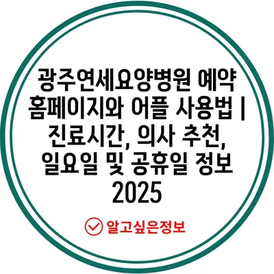 광주연세요양병원 예약 홈페이지와 어플 사용법 | 진료시간, 의사 추천, 일요일 및 공휴일 정보 2025