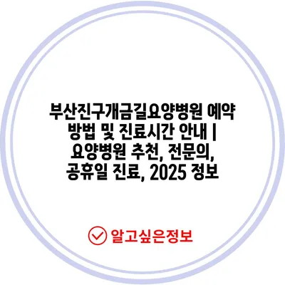 부산진구개금길요양병원 예약 방법 및 진료시간 공지 | 요양병원 추천, 전연락, 공휴일 진료, 2025 정보 에 대해 자주 묻는 질문 TOP 5