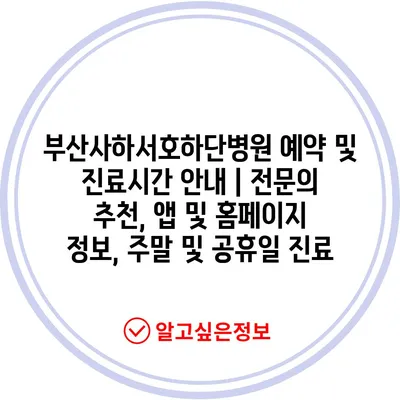 부산사하서호하단병원 예약 및 진료시간 안내 | 전문의 추천, 앱 및 홈페이지 정보, 주말 및 공휴일 진료