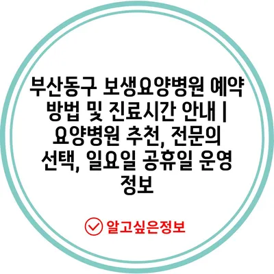부산동구 보생요양병원 예약 방법 및 진료시간 공지 | 요양병원 추천, 전연락 선택, 일요일 공휴일 운영 정보 에 대해 자주 묻는 질문 TOP 5