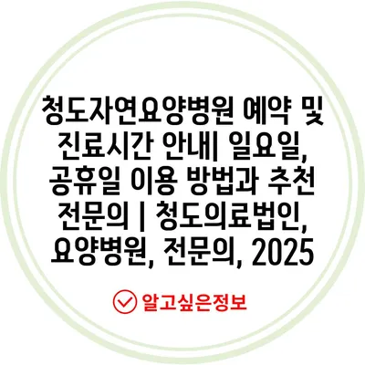 ✅ 청도자연요양병원의 진료시간과 예약 방법을 자세히 알아보세요.