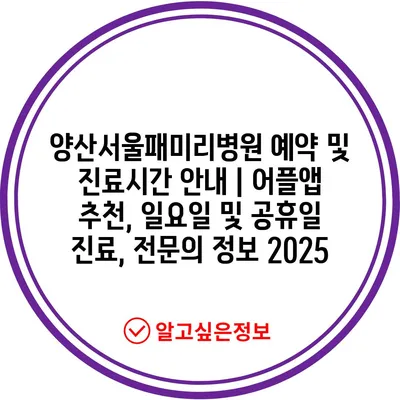양산서울패미리병원 예약 및 진료시간 공지 | 어플앱 추천, 일요일 및 공휴일 진료, 전연락 정보 2025 에 대해 자주 묻는 질문 TOP 5