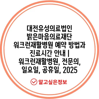 대전유성의료법인 밝은마음의료재단 워크런재활병원 예약 방법과 진료시간 공지 | 워크런재활병원, 전연락, 일요일, 공휴일, 2025 에 대해 자주 묻는 질문 TOP 5