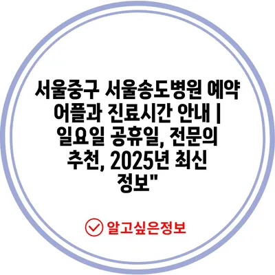 서울중구 서울송도병원 예약 어플과 진료시간 안내 | 일요일 공휴일, 전문의 추천, 2025년 최신 정보”