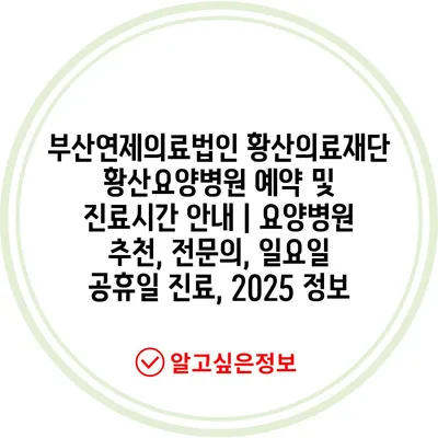 부산연제의료법인 황산의료재단 황산요양병원 예약 및 진료시간 공지 | 요양병원 추천, 전연락, 일요일 공휴일 진료, 2025 정보 에 대해 자주 묻는 질문 TOP 5
